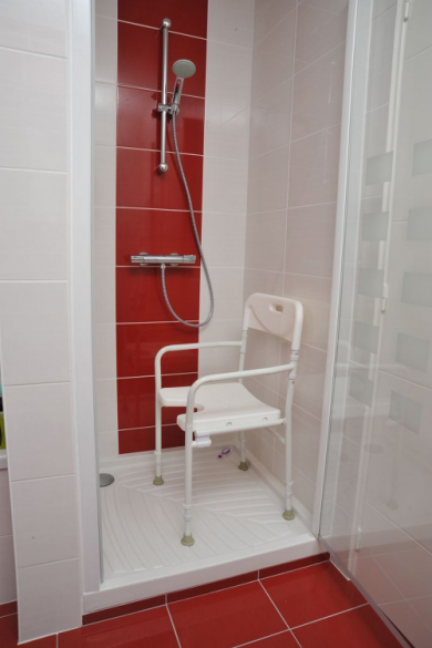Silla de ducha plegable Tobago, permite relajarse durante su ducha, cómodamente sentado.