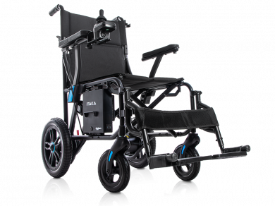 La silla de ruedas eléctrica iTaka es una silla superligera, fabricada en aluminio y plegable de forma fácil.